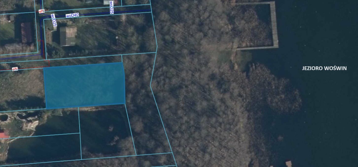 W swojej ofercie posiadamy bardzo urokliwą działkę przy jeziorze o powierzchni 1300 m2 położoną w województwie zachodniopomorskim , w powiecie stargardzkim , w gminie Chociwel ; nad jeziorem Woświn ( Pojezierze Ińskie ); 7,5 km na północny wschód od Chociwla (siedziby gminy) i 31 km na północny wschód od Stargardu .Działka o regularnym kształcie prostokąta sąsiadująca z lasem w bardzo bliskiej odległości od lini brzegowej. Odległość od jeziora około 200 m, plaża z łagodnym zejściem i pomostem. Wspaniałe miejsce na rekreację, możliwość postawienia domku letniskowego.